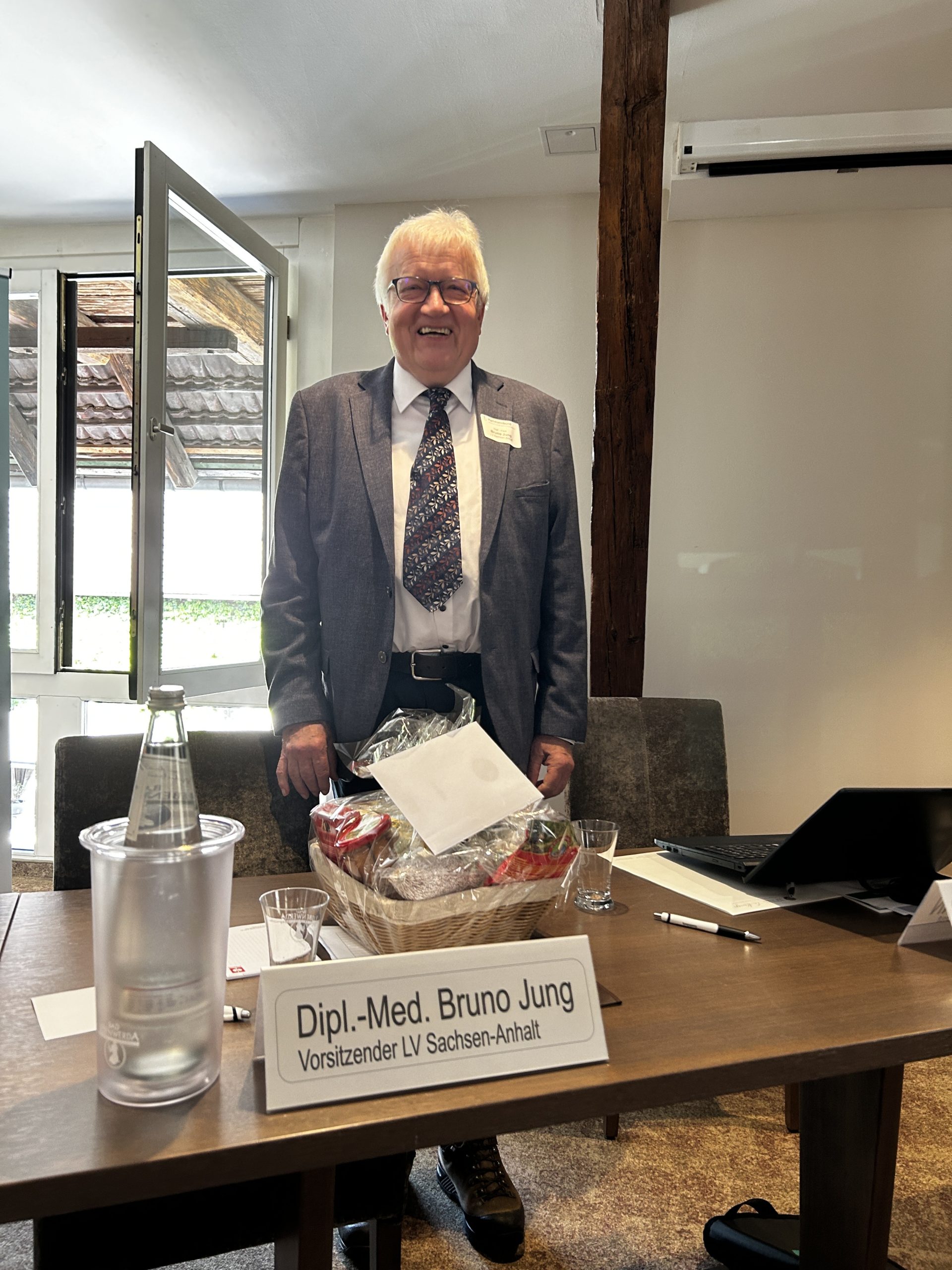 Mit stehenden Ovationen wurde Dipl.-Med. Bruno Jung nach 16 Jahren am 10. Mai in Quedlinburg aus dem Amt des Landesvorsitzenden verabschiedet. Der Facharzt für HNO-Heilkunde gehört dem neuen Vorstand nun als 2. Stv.Vorsitzender an. Zur neuen Vorsitzenden wählten die Delegierten einstimmig Dr. Med. Christina Willer. Die Fachärztin für Orthopädie und Unfallchirurgie bedankte sich bei ihrem Kollegen aus Thale für die geleistete Arbeit. Auch die Vorsitzenden der Landesverbände Sachsen, Dr. Thomas Lipp, und Thüringen, Dr. Jörg Müller, würdigten die Verdienste ihres Kollegen und wünschten alles Gute für die kommenden Jahre.